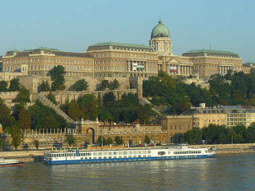 From Our Hotel Room in Budapest - National Palace (Now Art Museum), Danube River with Cruise Boat 100812